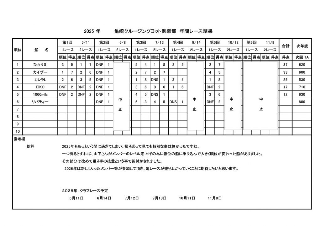 • 2025年度レース結果